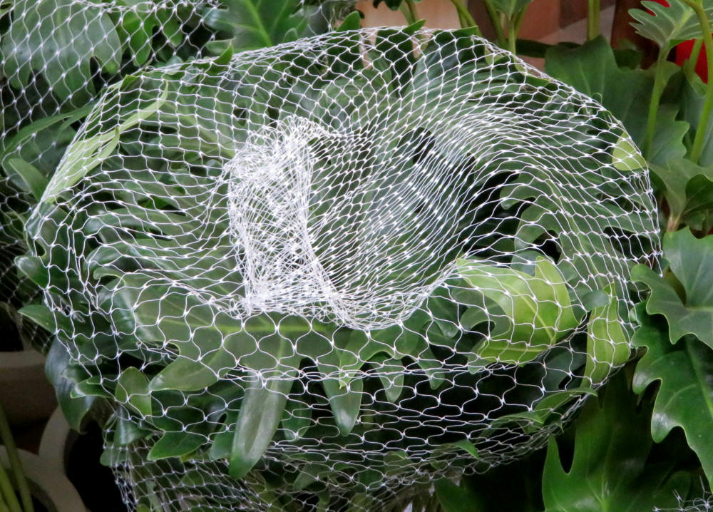 There's a flower shop just inside the grocery store near the apartment. Recently, they had some larger plants covered in a protecive mesh. They kind of struck me as looking like images from a 3D CAD package, so I tried getting artsy to capture that impression with the camera.
