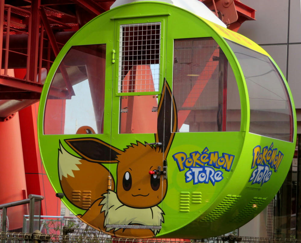 The Ferris wheel on top of Amu Plaza has one car with a Pokemon theme (and Pokemon stuffed toys inside) to promote the goods shop in the main department store.