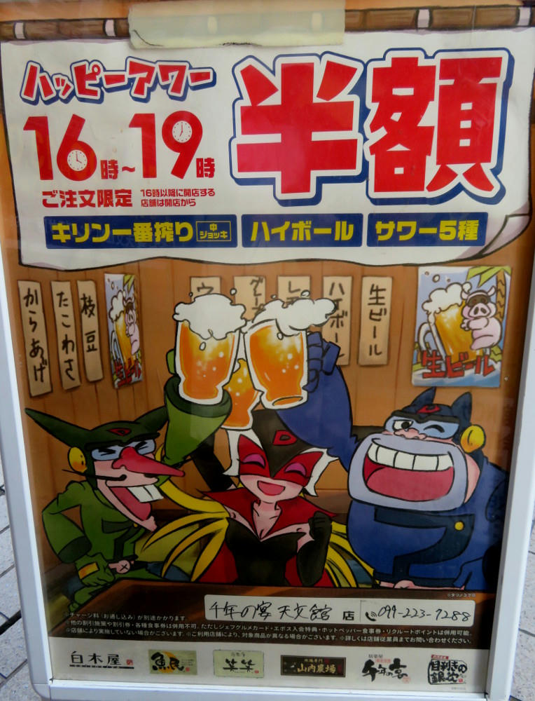 Back on Jan. 15, I wrote about a pair of posters I'd found at a restaurant that used characters from the old Time Bokan TV anime series. A few weeks later, I discovered that the back side of one of the sandwich boards had an even better illustration using the villains from the same series.