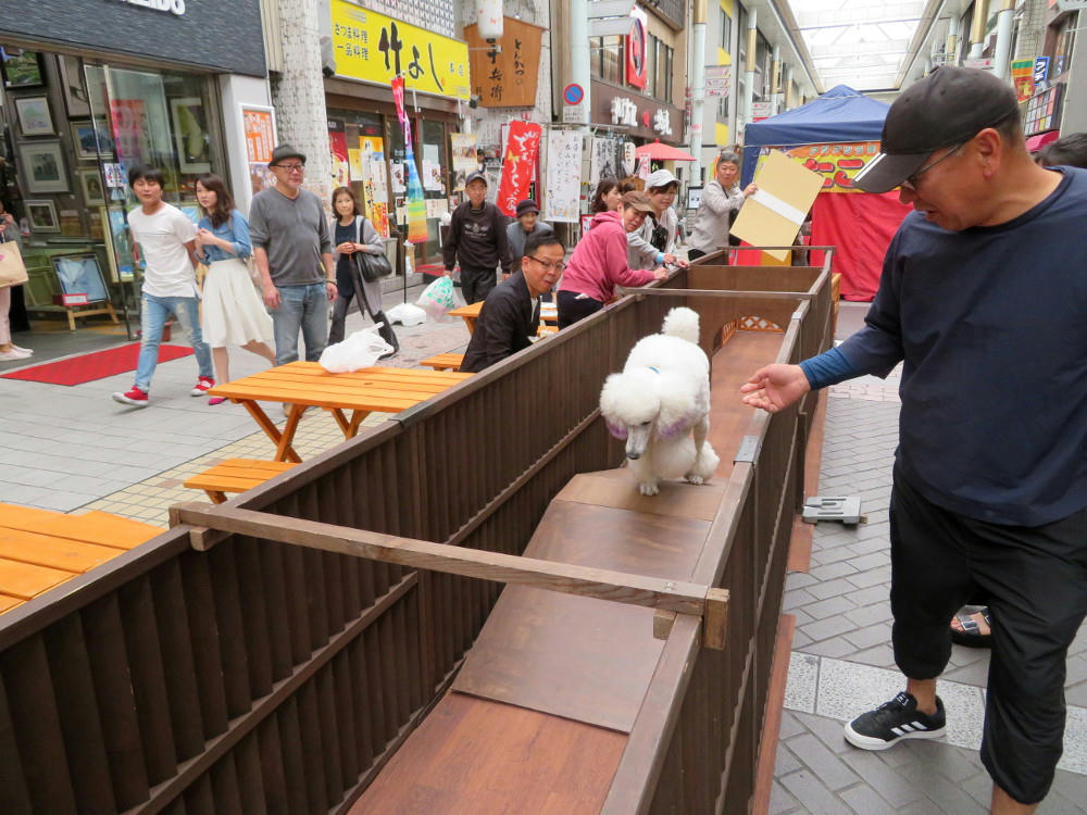 The Wan Wan (Bowwow) Festa is back in Tenmonkan. Oddly, it was on the same weekend as Dai Hanya this year, and in the part of Tenmonkan where two of the Dai Hanya satellite locations have traditionally been. There was a food booth, this obstacle course, accessories tables, and a small petting zoo.