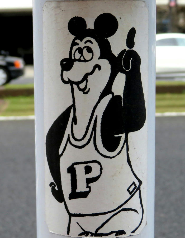 I've been seeing this sticker around Tenmonkan lately. Maybe some local band has claimed it as a logo, but it really looks like the Hamm's beer bear...