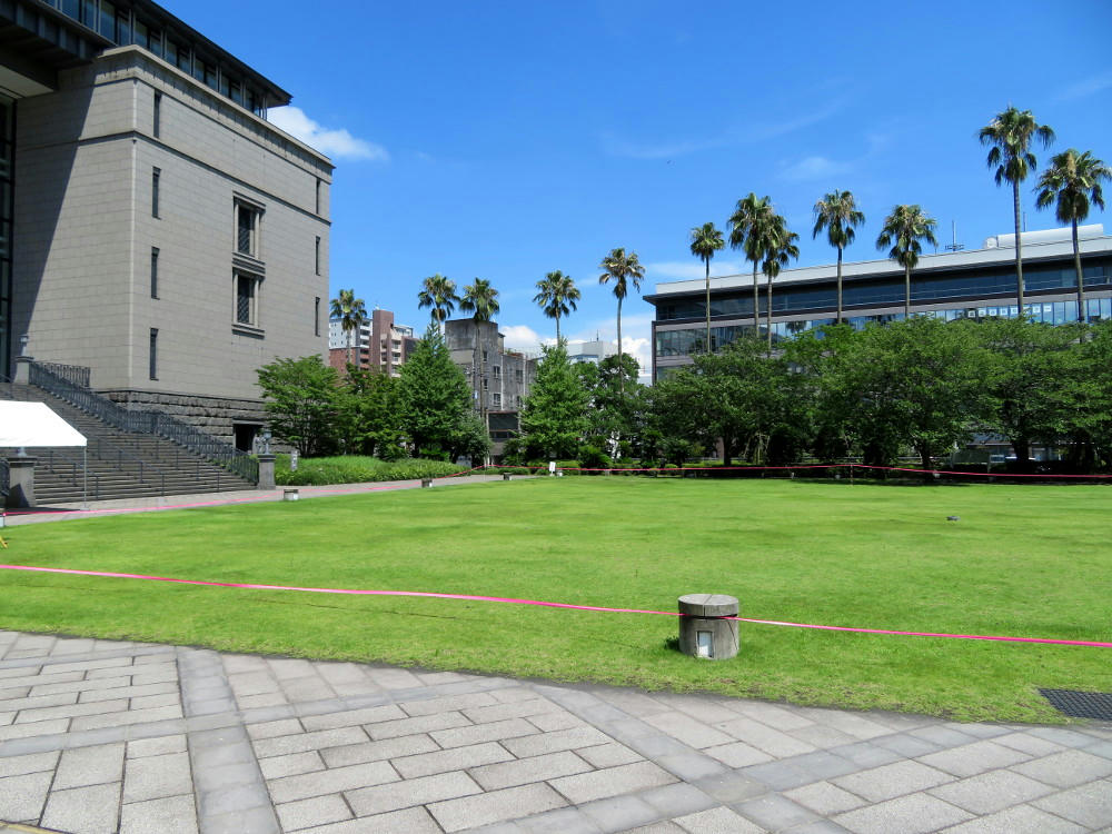 I was at the Volunteer Center Friday morning, and as I was leaving I saw this big yellow tape square cordoning off the front lawn. I hadn't seen any signs advertising any events for the day, and I didn't have time to stick around to watch what happened (I had a class at the English school in a few minutes).