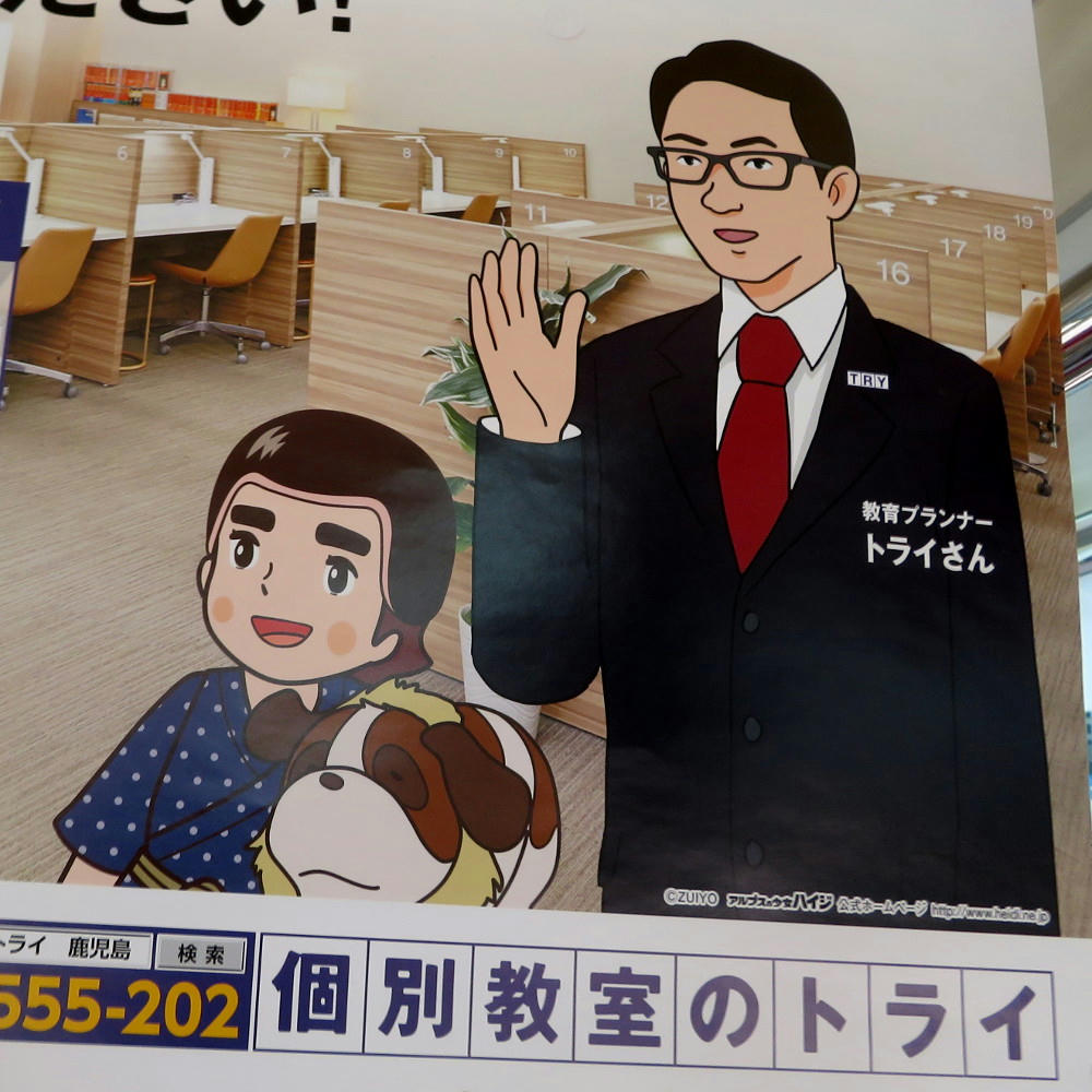 Try is a cram school chain in Japan, and they use artwork and character designs from Miyazaki's old "Heidi, Girl of the Alps" TV anime. This is the first time I've seen Heidi dressed up as Saigo Takamori. Took me a really long time to figure out what this was supposed to be.
