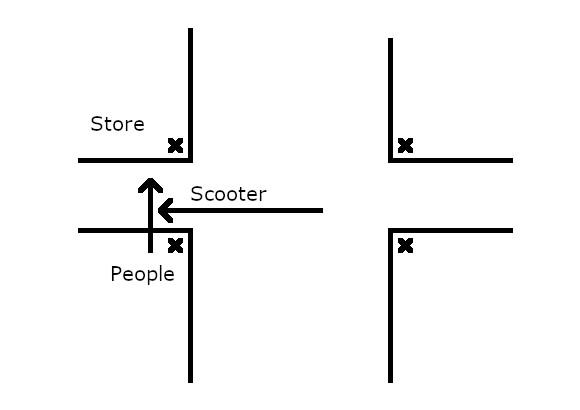 The light for us was red, and some guy on a scooter was racing through the intersection to beat the light before it turned green for us. Three other people were standing at the same corner, and no one said anything about the impending accident. I ended up calling out "abunai, abunai" (it's dangerous, look out). The woman looked up, saw the light was still red, then looked at me. The scooter screeched to a halt a foot from the woman, and she turned to see the guy for the first time, just as the light turned green for us (yes, he was running the red light for him). Everyone apologized to everyone else, and went on their own ways as if nothing unusual had happened.