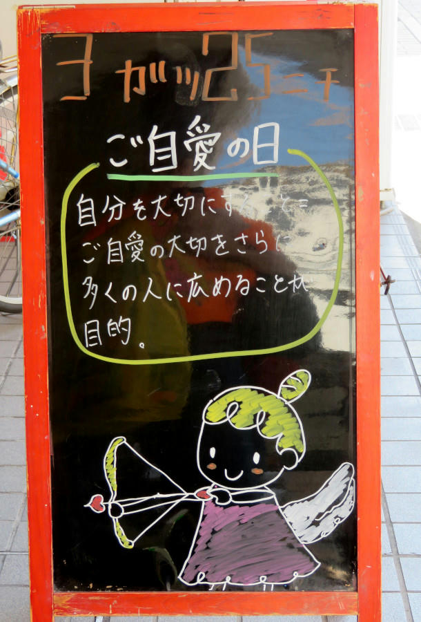 "Be good to yourself day." (Actually, it can read as "Self-Love Day", so, take that as you will.)