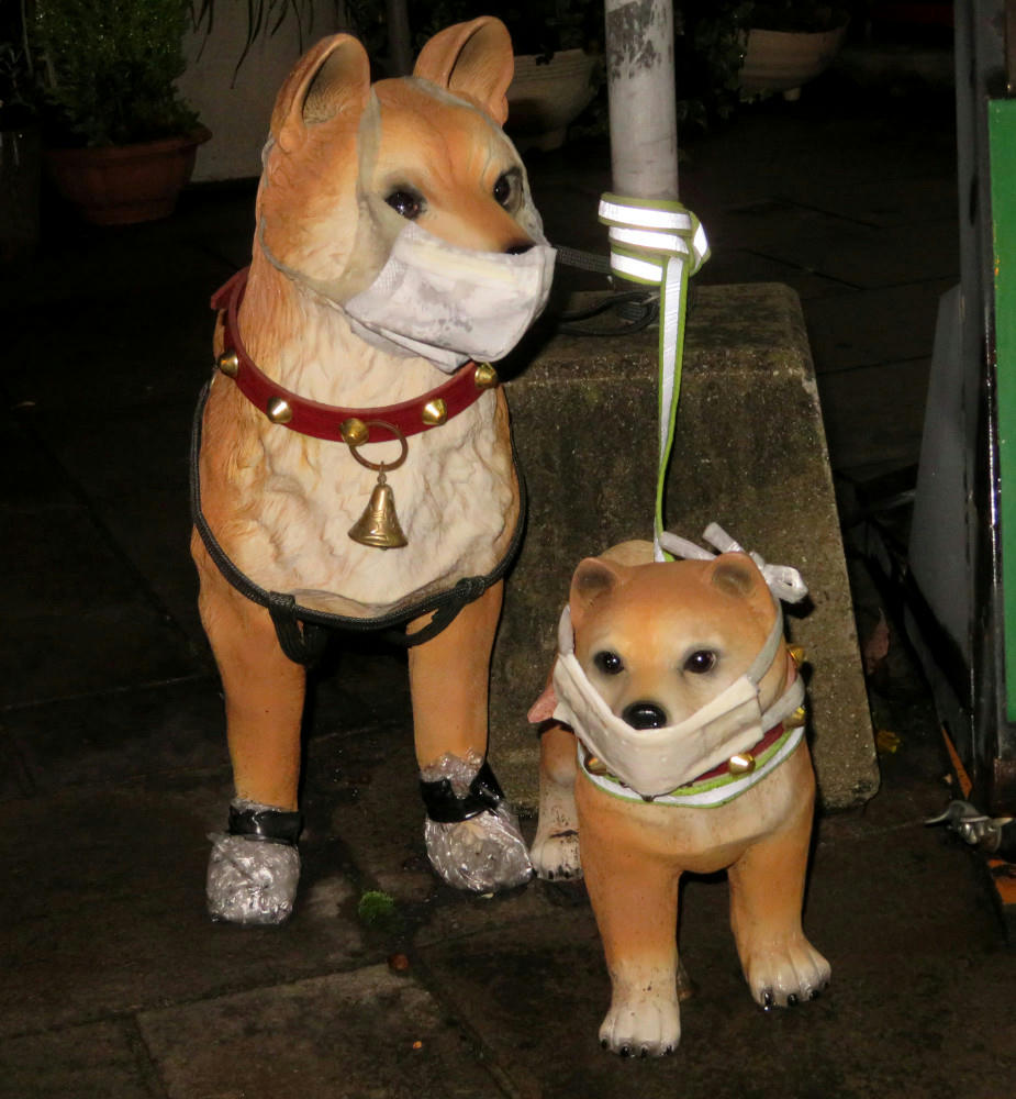 Saigo Takamori's masked mascot, Tenten and friend. Outside the Tourist Information Center by Central Park.