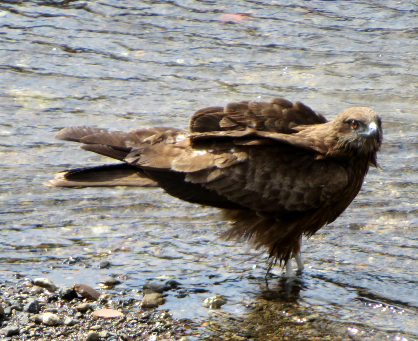 One day, I was walking along the Kotsuki river on my way back from Yamada Denki electronics store, when this hawk (or kite) landed in the river and started mixing a bath with catching small fish for lunch.