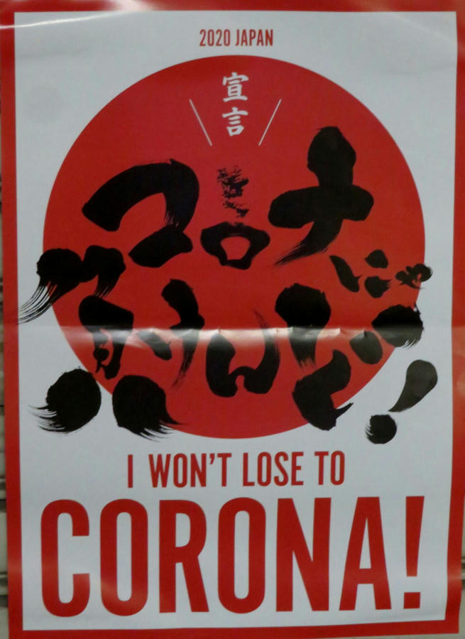 These signs are becoming more prevalent in front of the shops in Tenmonkan. Again, I don't know if this is supposed to say "Japan will survive this", or "This shop won't close during the shut down."
