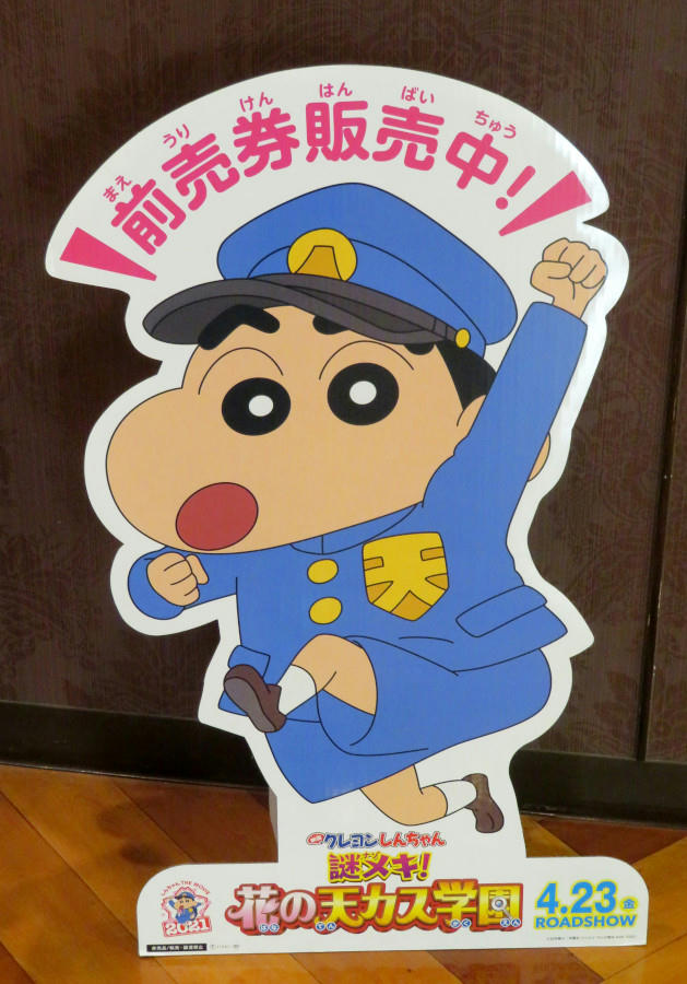 Advertising for the newest Crayon Shin-chan movie - "Shrouded in Mystery - The Flowers of Tenkasu Academy."